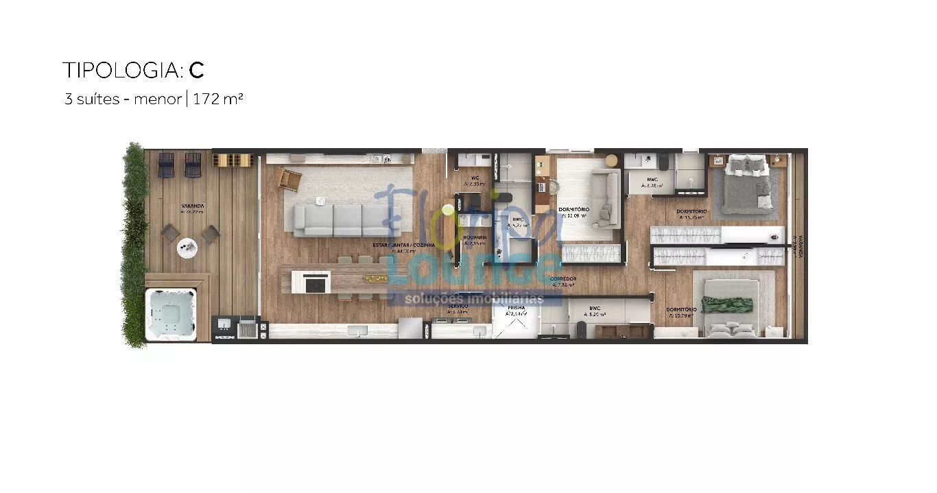 APARTAMENTOS COM 3 SUÍTES COM 172 M² GARDEM 187 M²