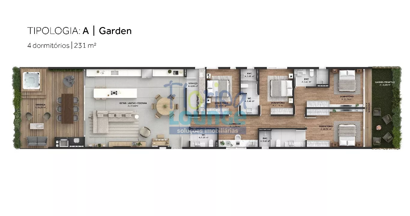 APARTAMENTOS COM 2 SUÍTES COM E 129 M² GARDEM 142 M²