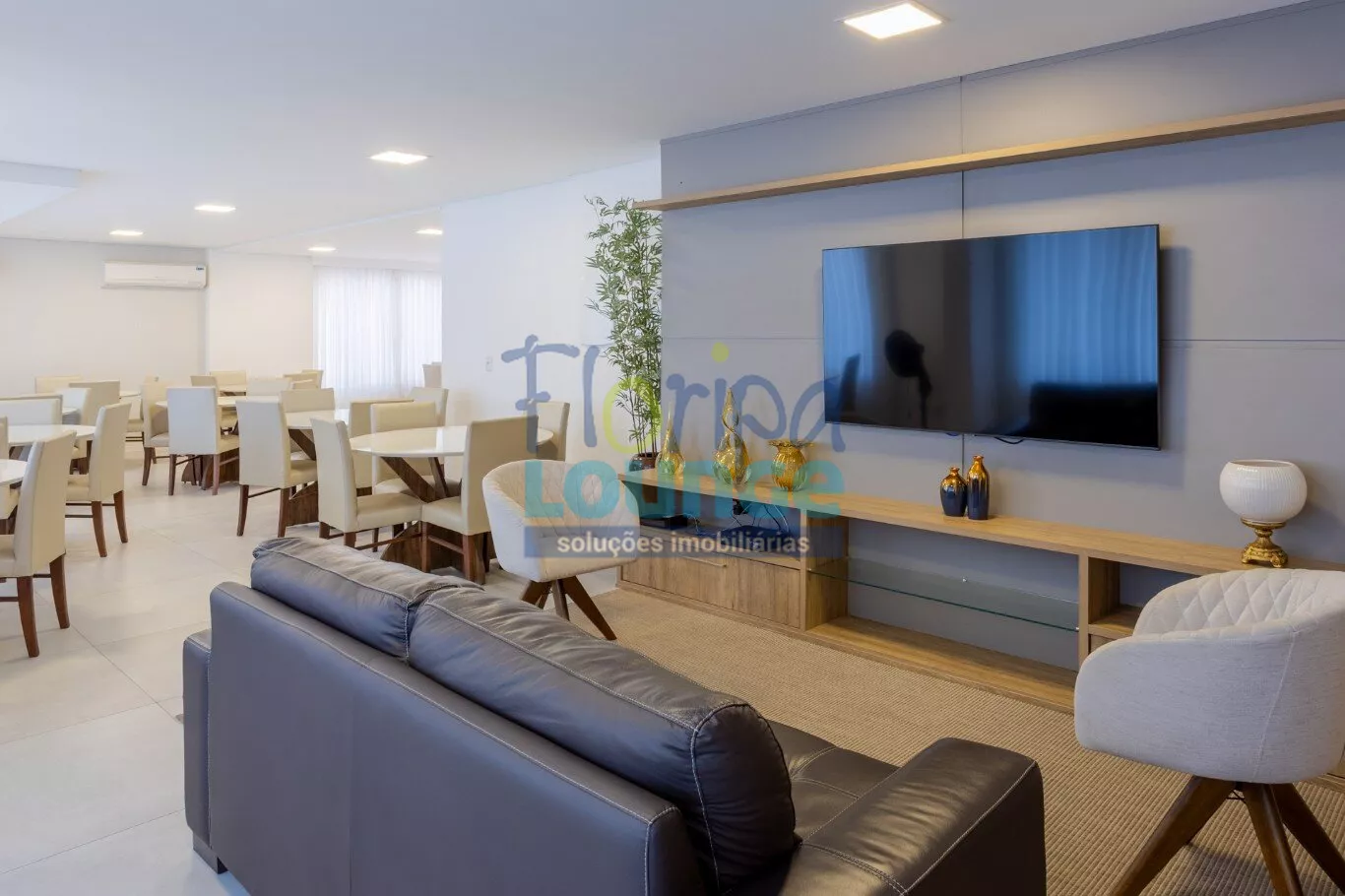 Salão de festas mobiliado e equipado