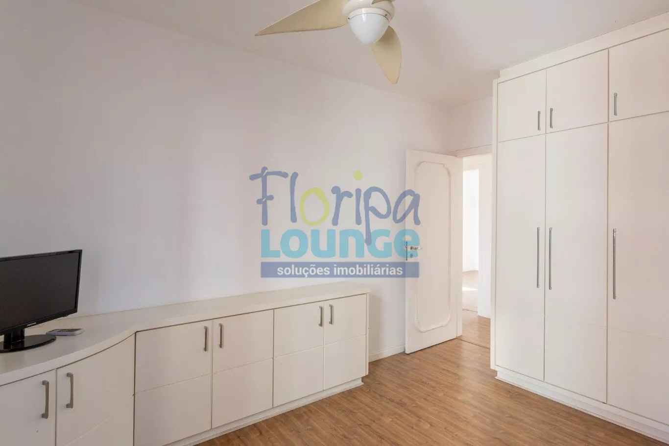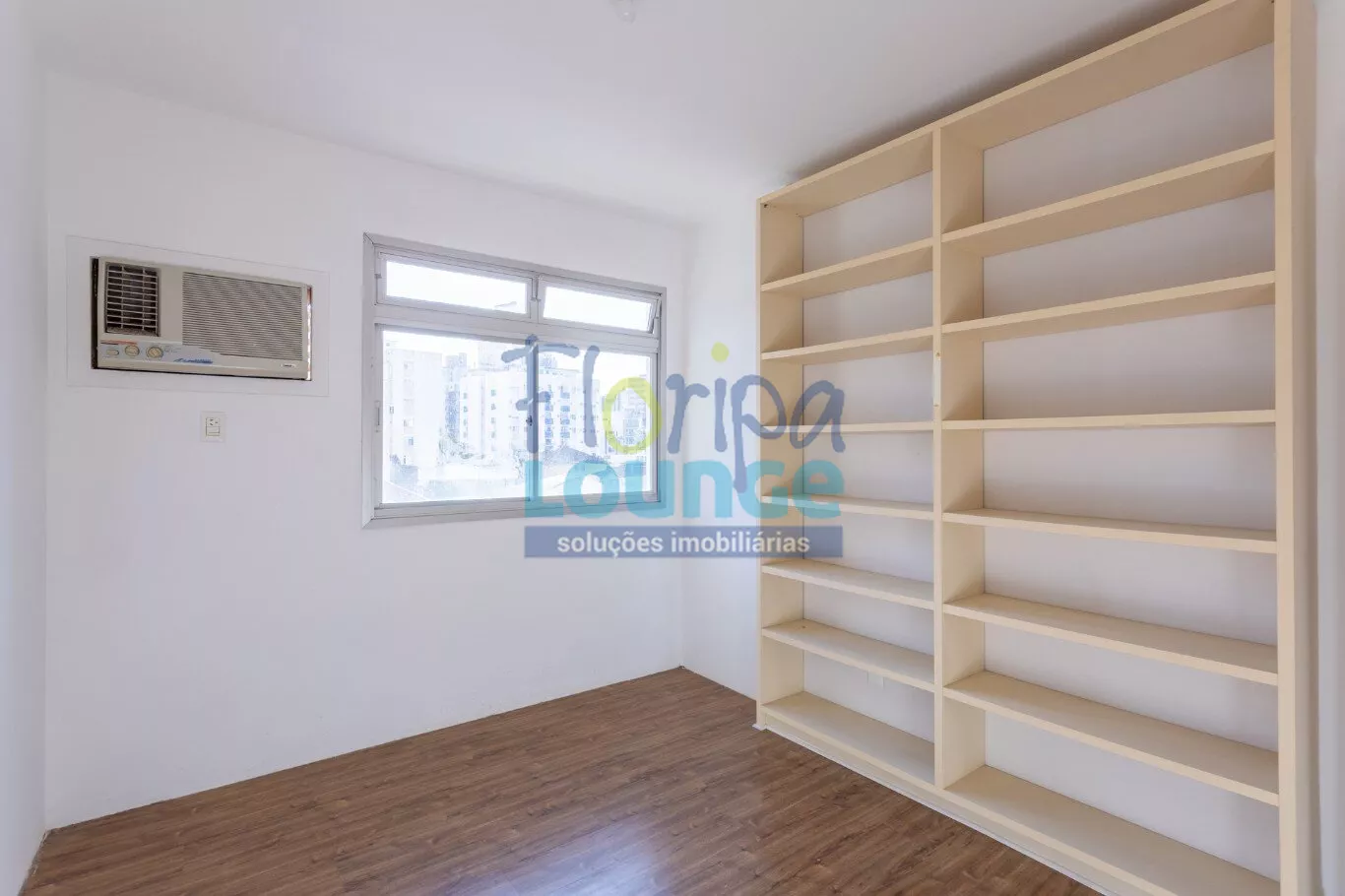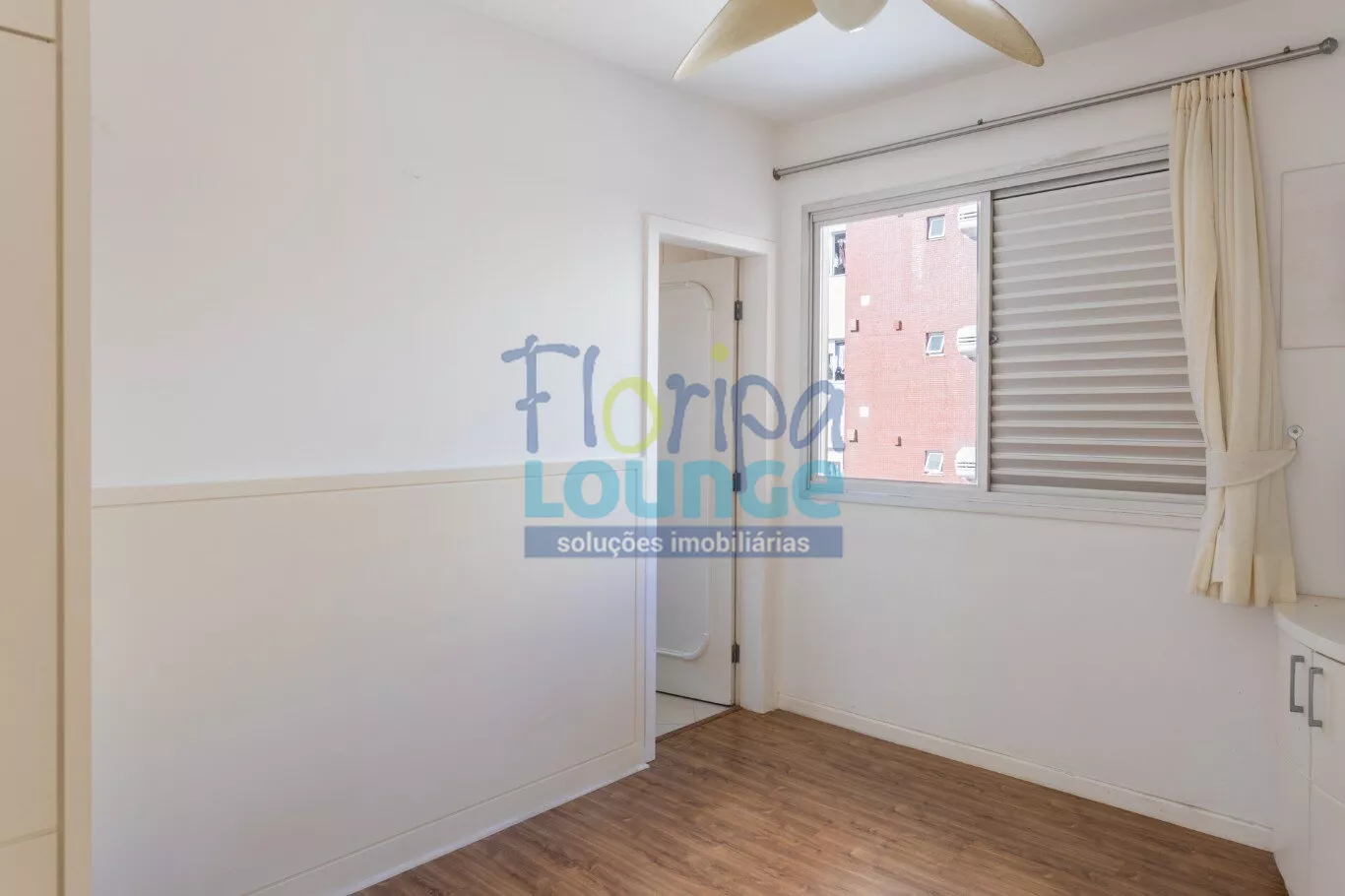 Piso em porcelanato nas salas e madeira laminada nos quartos